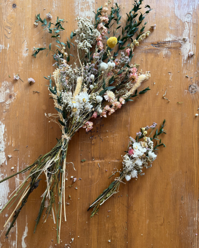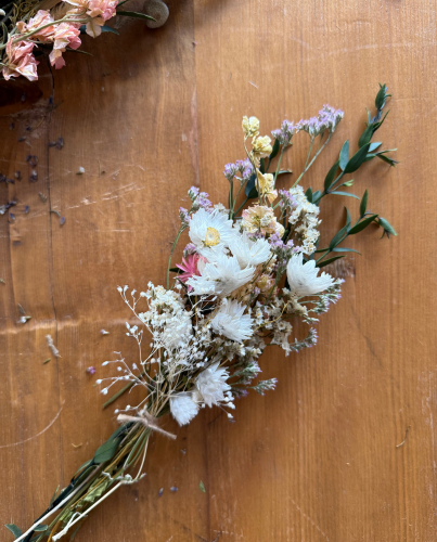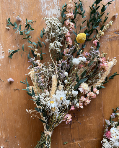 Precioso ramo de flores preservadas en tonos suaves y delicados, perfectos para crear un ambiente cálido en cualquier rincón de tu casa.