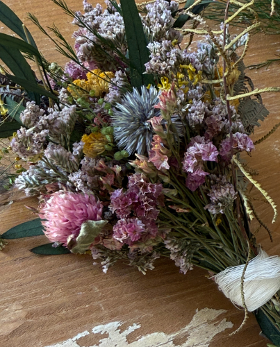 Precioso ramo de flores preservadas en tonos suaves y delicados, perfectos para crear un ambiente cálido en cualquier rincón de tu casa.