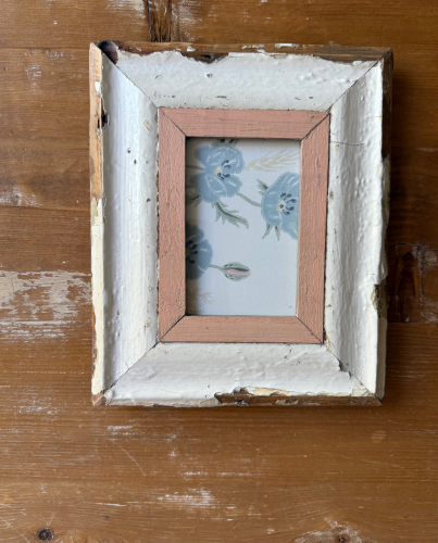 Precioso marco cuadrado para colgar o apoyar en la pared realizado con maderas recicladas.